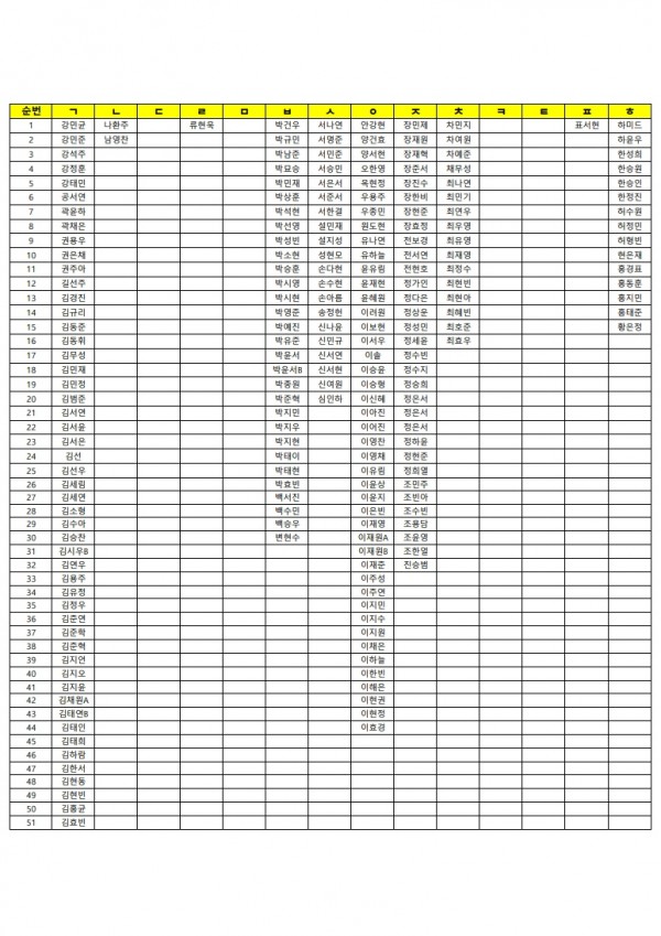 10월 4일(토)추석 연휴 자습 신청 명단