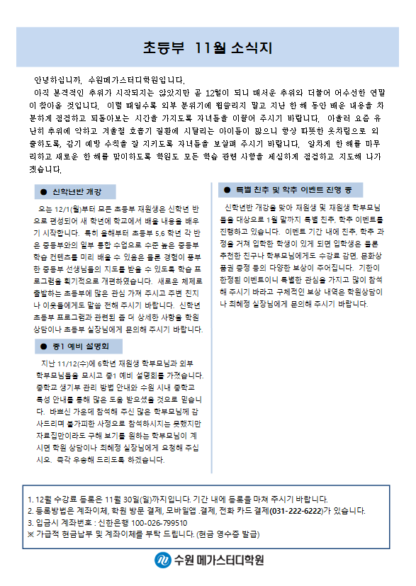 초등 [초등] 11월 가정통신문