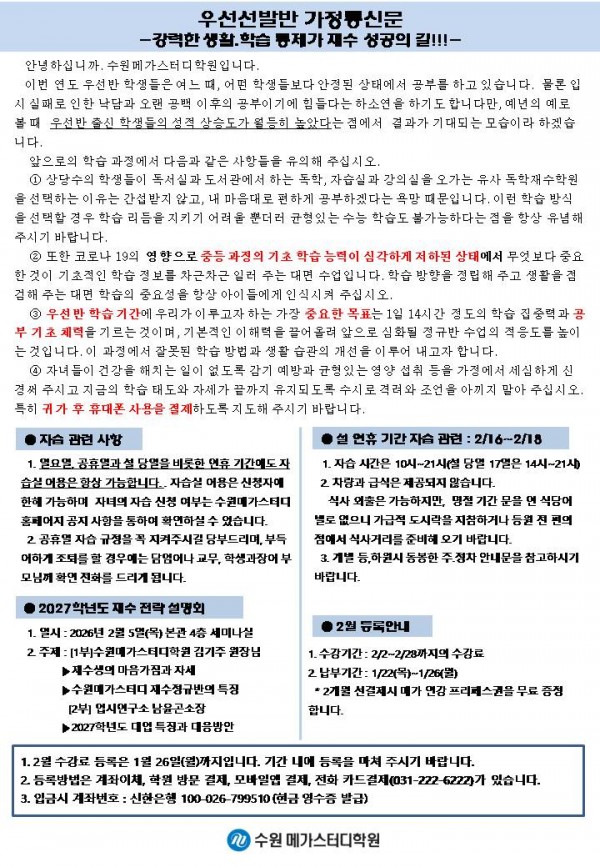 재수 [재정] 1월 가정통신문