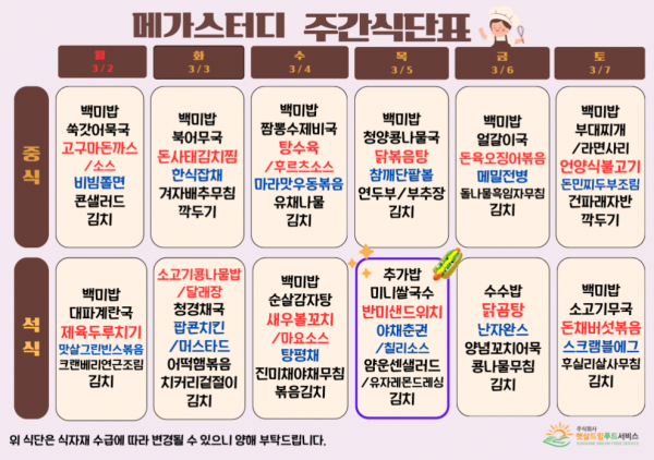 3월 1주차 식단표(3/2~3/7)