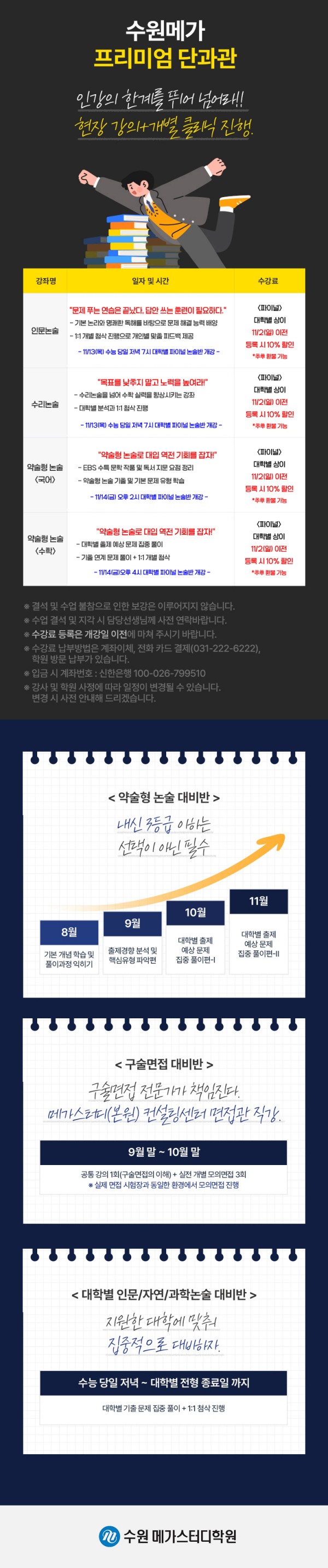 2025 파이널 대학별 논술 프로그램(인문/수리/약술형 논술) 페이지 정보 작성자 최고관리자 작성일 22-11-26 11:12 조회 4,346회 댓글 0건 본문 2025 파이널 대학별 논술 프로그램(인문/수리/약술형 논술)