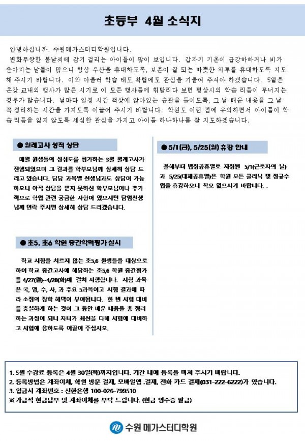 초등 [초등] 4월 가정통신문