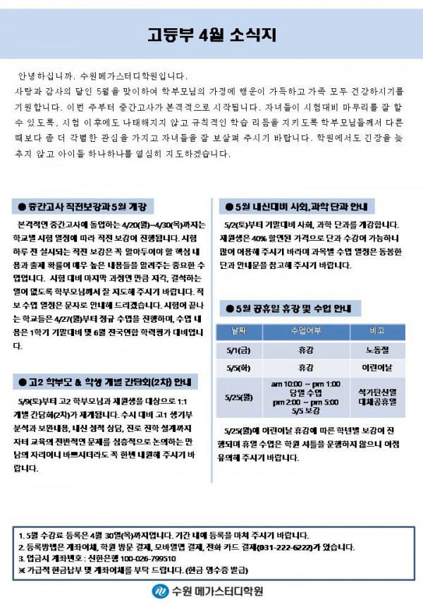 고등 [고등] 4월 가정통신문